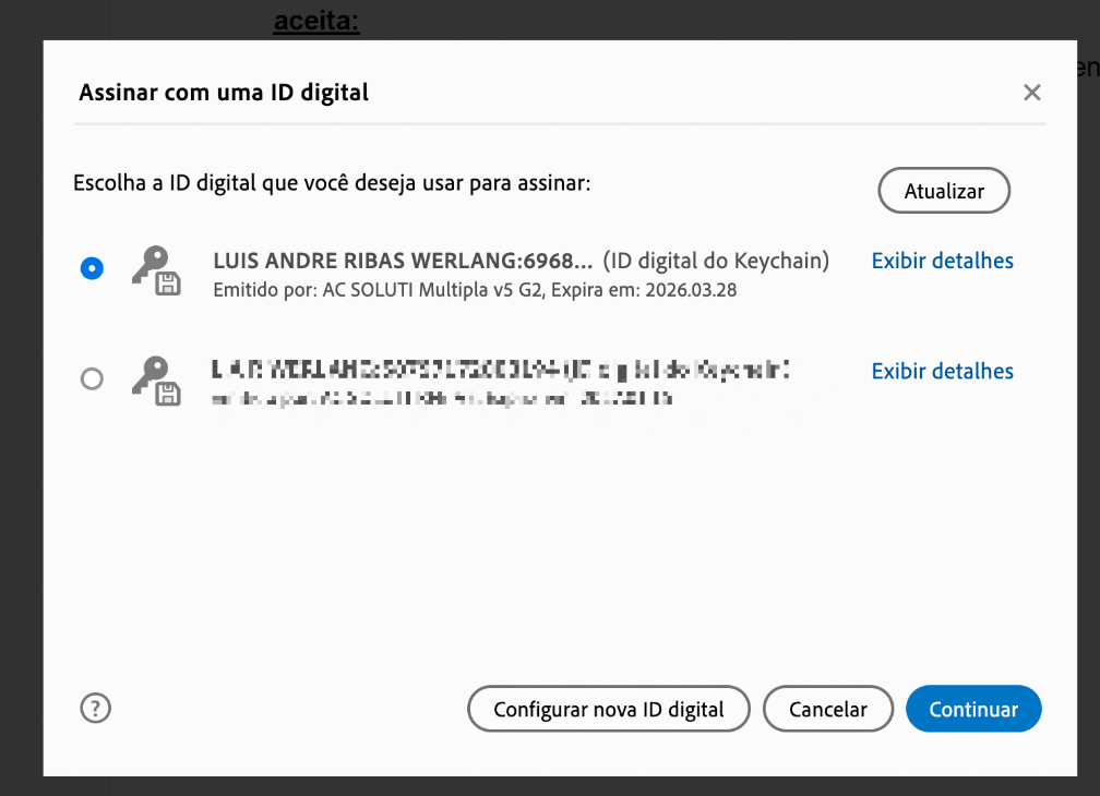 Passo 6: Após clicar em “Continuar” no painel de assinaturas, abrirá uma janela para salvar o arquivo. A assinatura ficará como a da imagem a seguir: