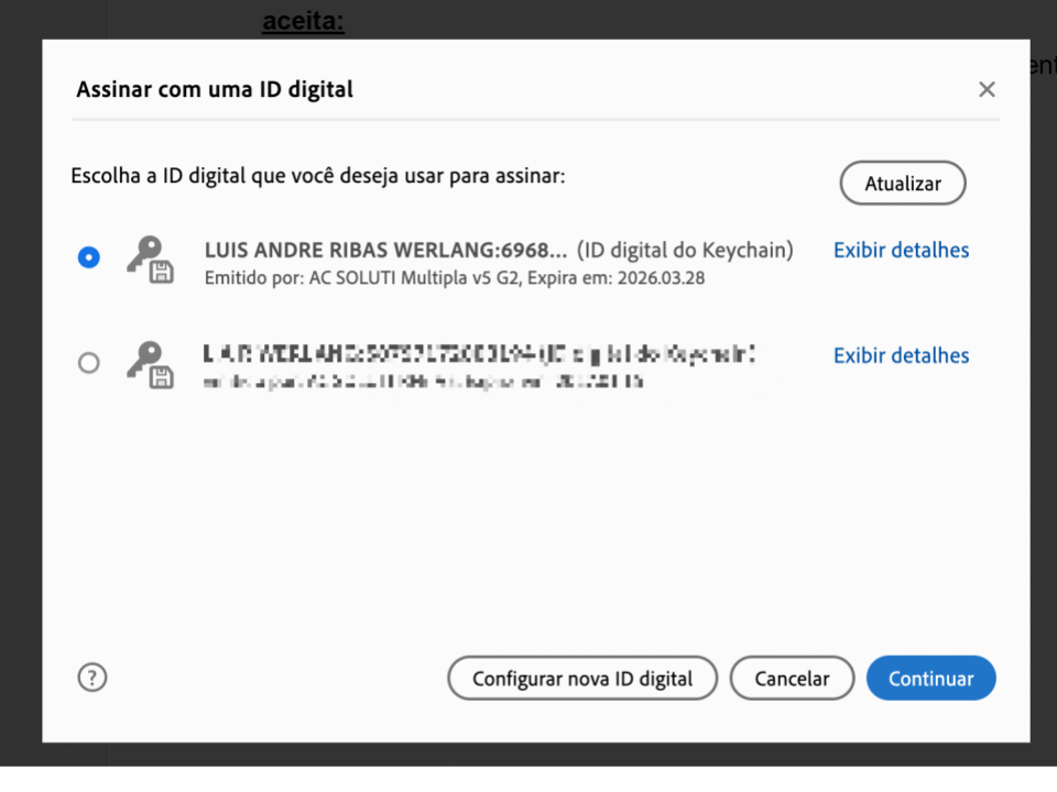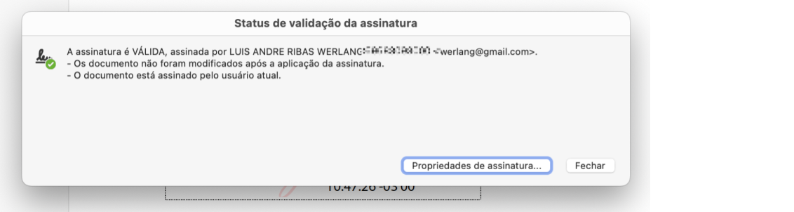 Passo 6: Após clicar em “Continuar” no painel de assinaturas, abrirá uma janela para salvar o arquivo. A assinatura ficará como a da imagem a seguir: